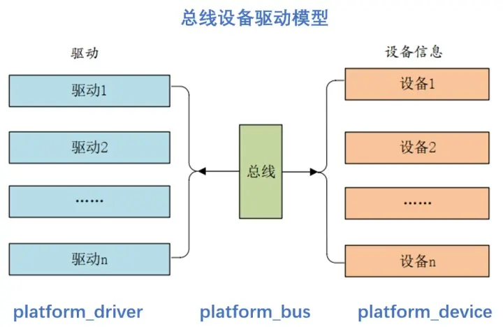 在总线设备驱动模型中,需要关注总线、设备和驱动这三个实体、总线会将设备和驱动绑定。