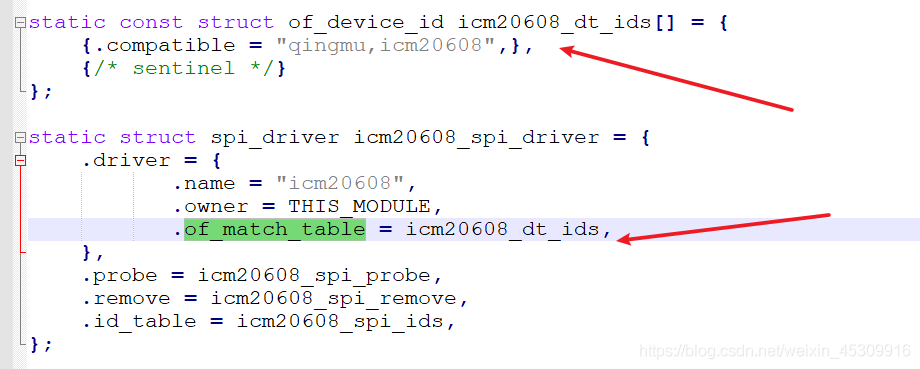 其中of_match_table成员变量保存着驱动的compatible匹配表。