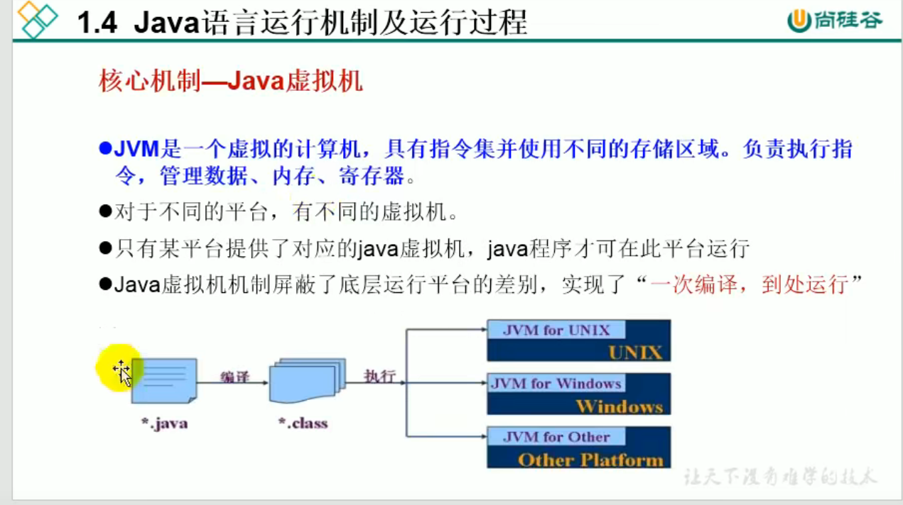 原理:只要在需要运行java应用程序的操作系统上,先安装一个Java虚拟机JVM JavaVirtual Machine)即可。由JVM来负责Java程序在该系统中的运行。
