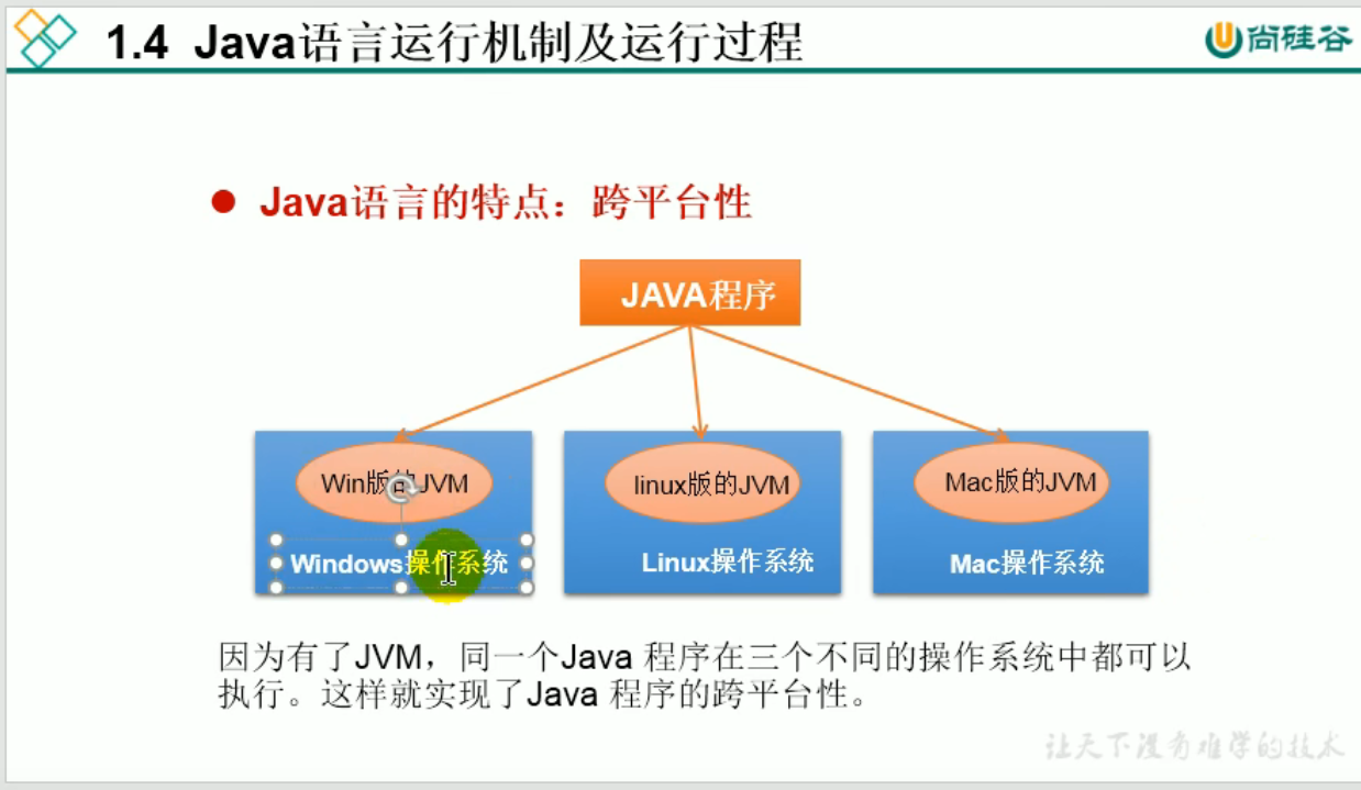 跨平台性:通过Java语言编写的应用程序在不同的系统平台上都可以运行。“Nriteonce,Run Anywhere"