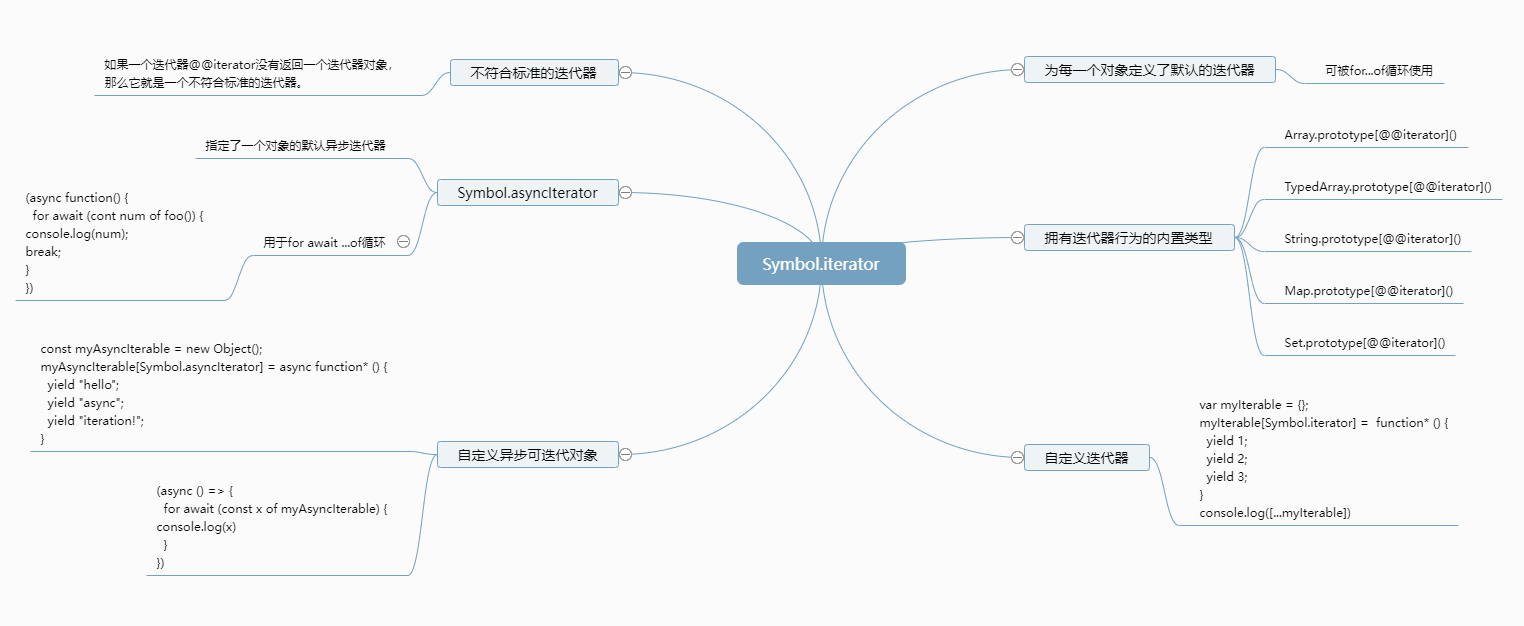 当需要对一个对象进行迭代时(比如开始用于一个for...of循环中),它的@@iterator方法都会在不传参情况下被调用,返回的迭代器用于获取要迭代的值。