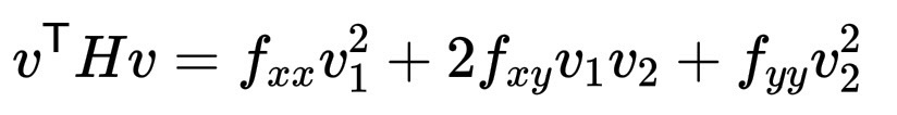 v^\mathsf{T} H v = f_{xx}v_1^2 + 2f_{xy}v_1v_2 + f_{yy}v_2^2