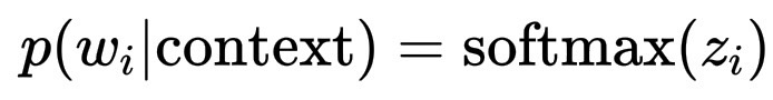 p(w_i | \text{context}) = \text{softmax}(z_i)