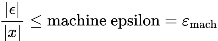 \frac{|\epsilon|}{|x|} \leq \text{machine epsilon} = \varepsilon_{\text{mach}}