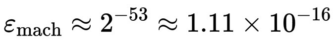 \varepsilon_{\text{mach}} \approx 2^{-53} \approx 1.11 \times 10^{-16}。