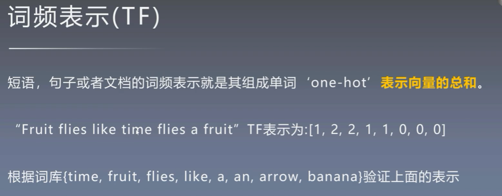是基于one-hot表示基础上对于每个词的统计,其实也可以理解为one-hot求和的结果