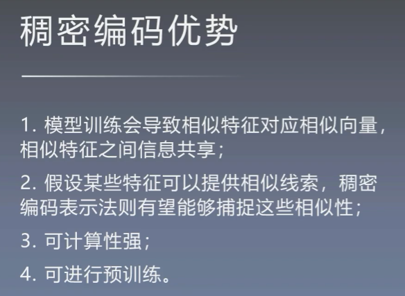 稠密编码其实就是词向量,后面的特征编码部分会进行详细介绍