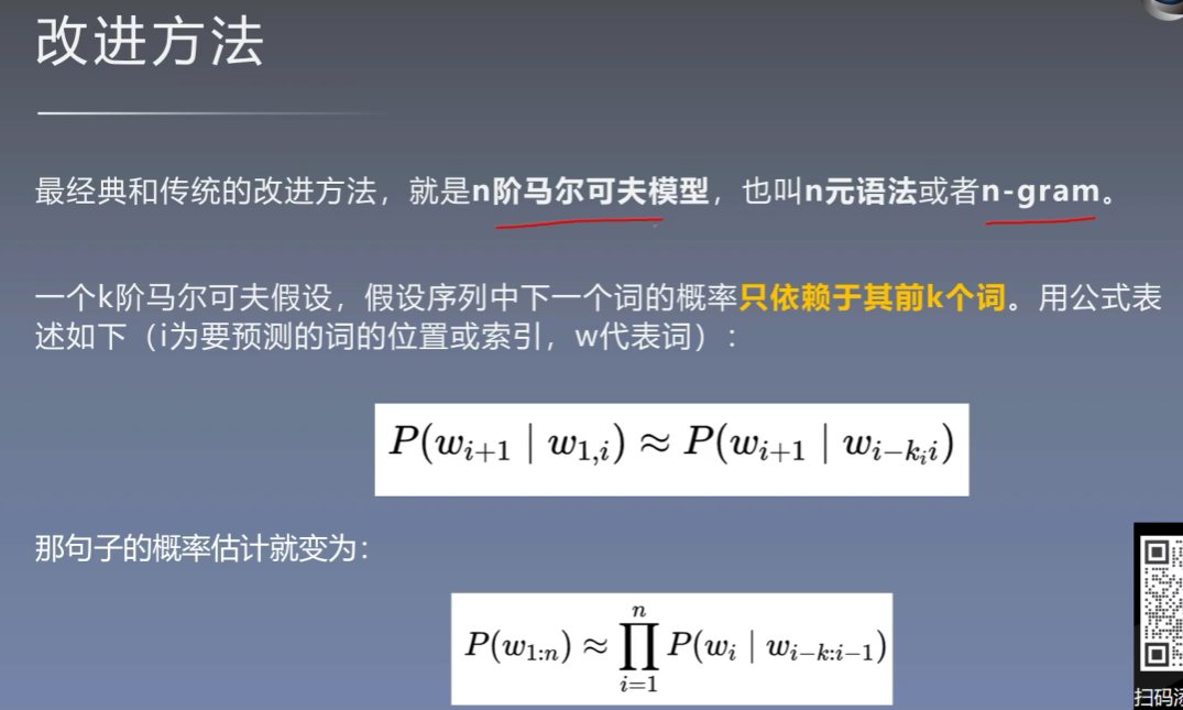 构建一个语料库,除此以外的词本概率就为0。但是我们现实中根本无法涵盖所有的文本,而且随着样本的增大,每个句子的概率都会趋近于0,但是词表中的词会是重复的,所以构建单词列表