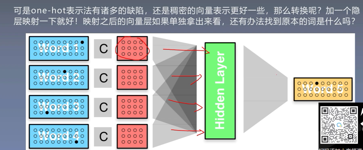稠密编码的每个数据都要经过NN学习,将一个词作为输入学成一个词向量的过程就是词嵌入