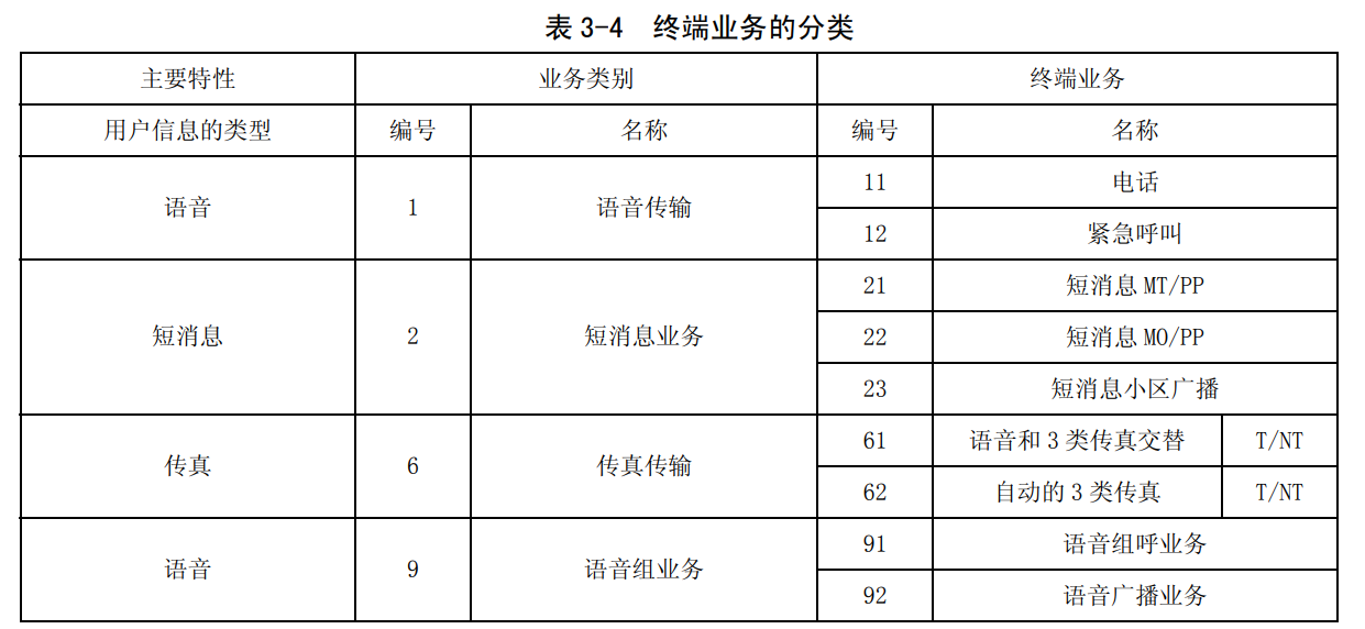 GSM-R 终端业务的主要类别如表 3-4 所示: