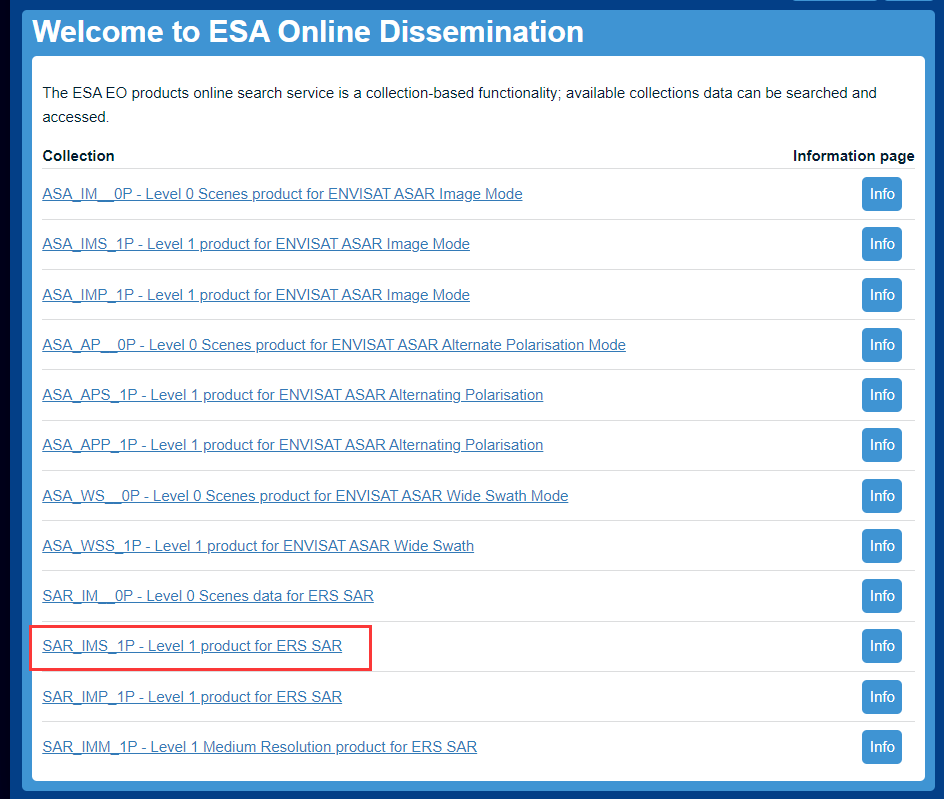 在1.1,1.2的数据均不能满足需求的情况下,考虑到ERS的发射机构为欧空局,最后将目光投向了官网。