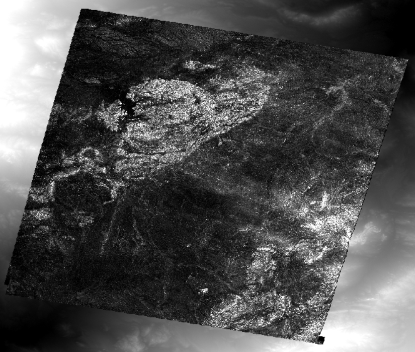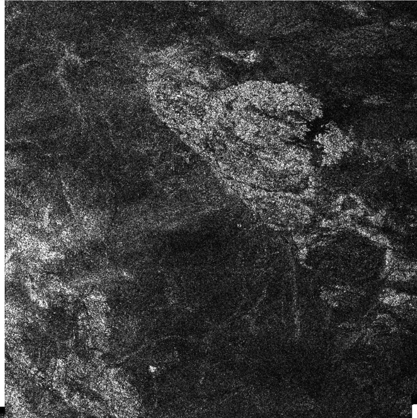 经过地理编码与辐射校正后,得到具有投影信息的后向散射强度的SAR影像。