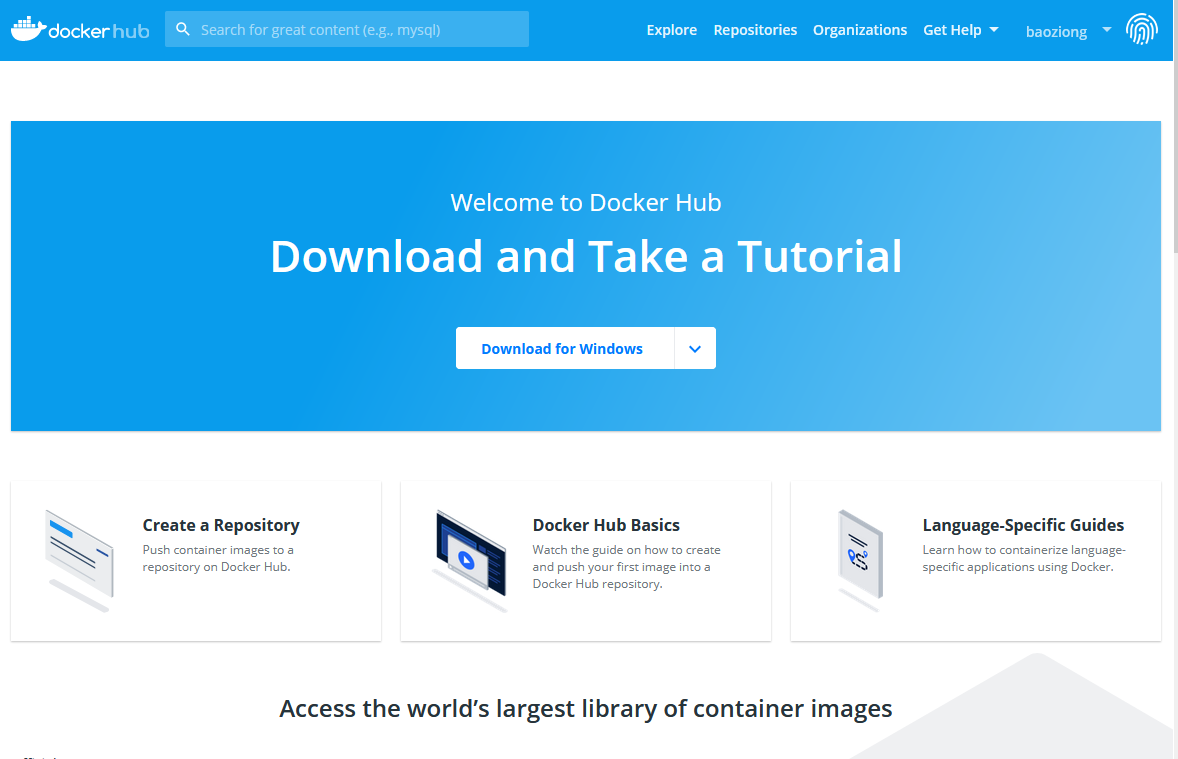 打开dockerhub网页(https://hub.docker.com/),右上角登陆