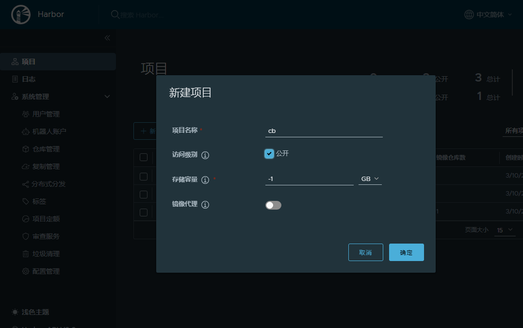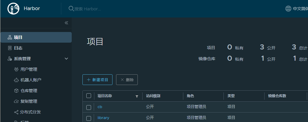 [root@cb harbor]# vim harbor.yml hostname: 192.168.122.143 //修改地址 # http related config http: # port for http, default is 80. If https enabled, this port will redirect to https port port: 80 # https related config #https: //注释掉 # https port for harbor, default is 443 # port: 443 //注释掉 # The path of cert and key files for nginx #certificate: /your/certificate/path //注释掉 #private_key: /your/private/key/path //注释掉 //执行安装脚本 [root@cb harbor]# ./install.sh ✔ ----Harbor has been installed and started successfully.---- [root@cb harbor]# ss -antl State Recv-Q Send-Q Local Address:Port Peer Address:Port LISTEN 0 128 0.0.0.0:22 0.0.0.0:* LISTEN 0 128 127.0.0.1:1514 0.0.0.0:* LISTEN 0 128 0.0.0.0:80 0.0.0.0:* LISTEN 0 128 [::]:22 [::]:* [root@cb harbor]# docker ps -a CONTAINER ID IMAGE COMMAND CREATED STATUS PORTS NAMES 7fbddc7a4480 goharbor/nginx-photon:v2.2.0 "nginx -g 'daemon of…" 2 minutes ago Up 2 minutes [root@cb harbor]# ls common docker-compose.yml harbor.yml install.sh prepare common.sh harbor.v2.2.0.tar.gz harbor.yml.tmpl LICENSE [root@cb harbor]# docker-compose stop Stopping nginx ... done Stopping harbor-jobservice ... done Stopping harbor-core ... done Stopping harbor-portal ... done Stopping registry ... done Stopping registryctl ... done Stopping harbor-db ... done Stopping redis ... done Stopping harbor-log ... done [root@cb harbor]# docker-compose start Starting log ... done Starting registry ... done Starting registryctl ... done Starting postgresql ... done Starting portal ... done Starting redis ... done Starting core ... done Starting jobservice ... done Starting proxy ... done [root@cb harbor]# ss -antl State Recv-Q Send-Q Local Address:Port Peer Address:Port LISTEN 0 128 0.0.0.0:22 0.0.0.0:* LISTEN 0 128 127.0.0.1:1514 0.0.0.0:* LISTEN 0 128 0.0.0.0:80 0.0.0.0:* LISTEN 0 128 [::]:22 [::]:* //需要写一个开启自动启动的脚本,否则重启不会启动 [root@cb harbor]# vim startall.sh #!/bin/bash cd /usr/local/harbor docker-compose stop && docker-compose start [root@cb harbor]# chmod +x startall.sh [root@cb harbor]# ll -rwxr-xr-x. 1 root root 77 3月 10 06:03 startall.sh #/etc/rc.local是系统启动后最后一个执行文件 [root@cb harbor]# ll /etc/rc.local lrwxrwxrwx. 1 root root 13 2月 26 2019 /etc/rc.local -> rc.d/rc.local [root@cb harbor]# ll /etc/rc.d/rc.local -rw-r--r--. 1 root root 474 2月 26 2019 /etc/rc.d/rc.local //给链接文件执行权限,写入启动执行脚本命令 [root@cb harbor]# chmod +x /etc/rc.d/rc.local [root@cb harbor]# vim /etc/rc.d/rc.local #!/bin/bash /bin/bash /usr/local/harbor/startall.sh