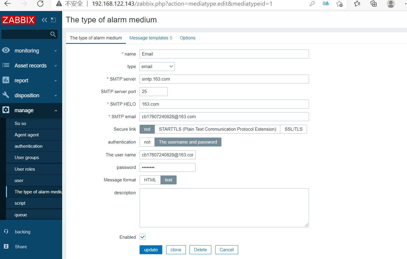| 服务器 | 172.168.122.143 | lamp架构 zabbix server zabbix agent |