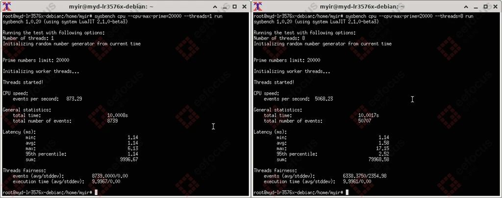 通用的性能测试工具Sysbench实际测试了RK3576 SoC的性能,如上图所示,分别是单核和8核的测试结果。跟大家熟悉的树莓派5相比,单核性能要差15%左右,而多核性能要高22%左右,毕竟是4大核、4小核的8核架构,实际应用中调度也能更加灵活。