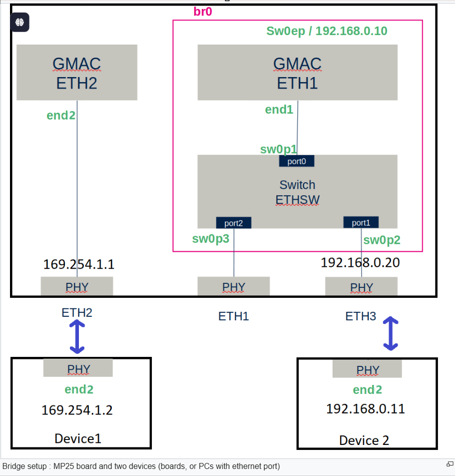 root@myd-ld25x:~# ifconfig end2 169.254.1.1 up root@myd-ld25x:~# ifconfig sw0p2 192.168.0.20 up root@myd-ld25x:~# echo 1 > /proc/sys/net/ipv4/ip_forward