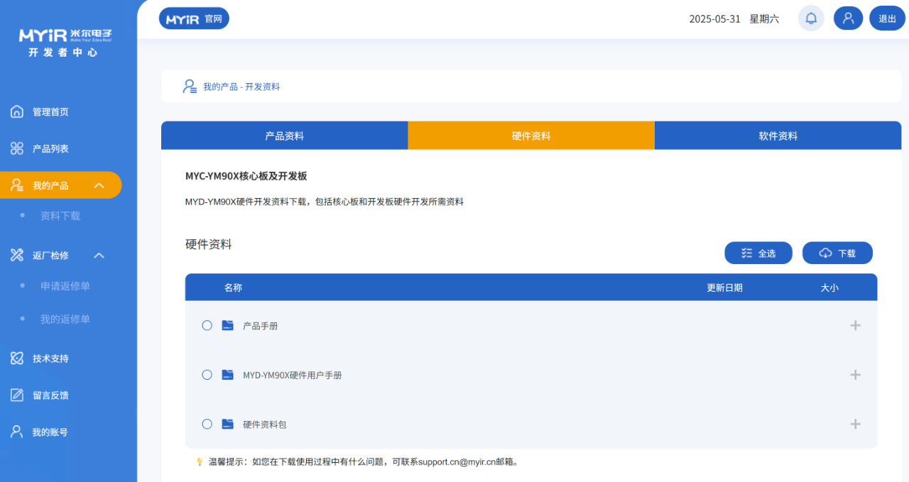 而且还有工业级版本可选,米尔的稳定性和做工都还是不错的,最近我发现米尔的开发板资料获取也更简单了,在他们的网站上注册账号绑定SN和PN码可以直接下载所有资料,比较方便。比之前方便不少。