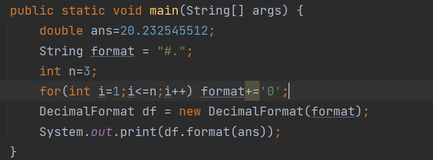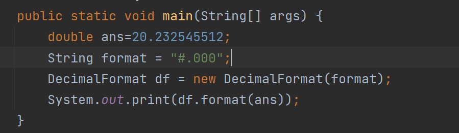 用DecimalFormat类的实例化对象的format的方法,在DecimalFormat构造的时候将所需要的格式传进去;