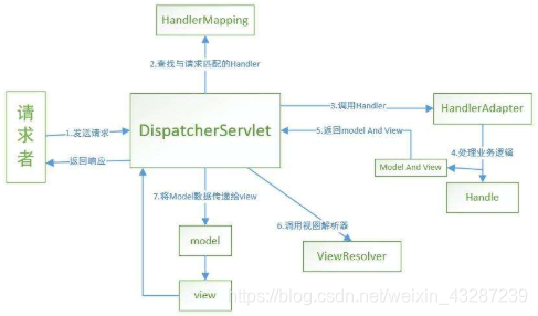 - 返回控制权给DispatcherServlet,由DispatcherServlet返回响应给用户。