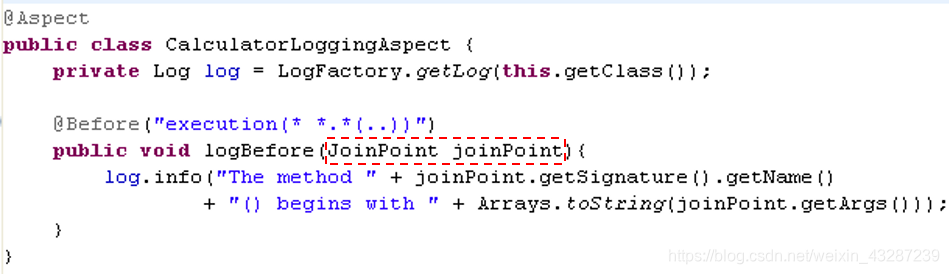可以在通知方法中声明一个类型为 JoinPoint 的参数. 然后就能访问链接细节. 如方法名称和参数值.