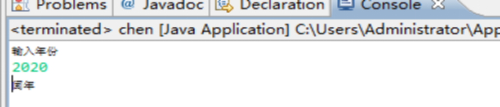 import java.util.Scanner; public class chen { /** * @param args */ public static void main(String[] args) { Scanner input=new Scanner(System.in); System.out.println("输入年份"); int x=input.nextInt(); if((x%400==0)&&x%4==0||x%100!=0) { System.out.println("闰年"); } else { System.out.println("不是闰年"); } } }