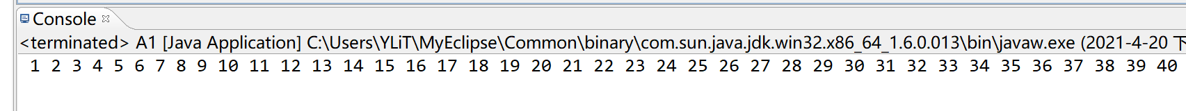 import java.util.Scanner; public class A1 { /** * @param args */ public static void main(String[] args) { // TODO Auto-generated method stub Scanner input=new Scanner(System.in); int[] a=new int[100]; int b=0; for (int j = 0; j < a.length; j++) { b++; a[j]=b; System.out.print(" "+a[j]); } } }