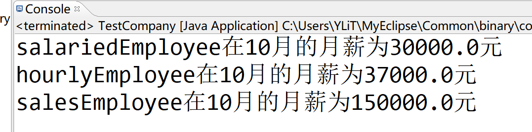 System.out.println(c.name + "在" + month + "月的月薪为" + c.getSalary(month)+ "元");