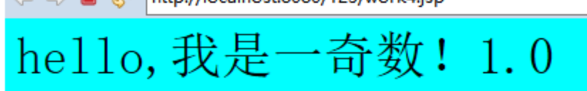 <!DOCTYPE HTML PUBLIC "-//W3C//DTD HTML 4.01 Transitional//EN"> <html> <head> </head> <body bgcolor=cyan> <p style ="font-family:宋体;font-size:36"> <% String s=request.getParameter("number"); out.println("hello,我是一奇数!"+s); %> </p> </body> </html>