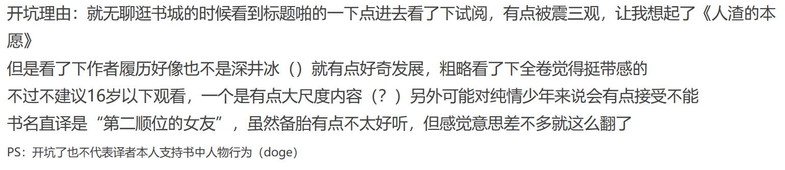 如果作为乐子人,其实乐子挺少的,只有第四卷比较扭曲,程度一般,<<备胎女友第一卷。不是很推荐。