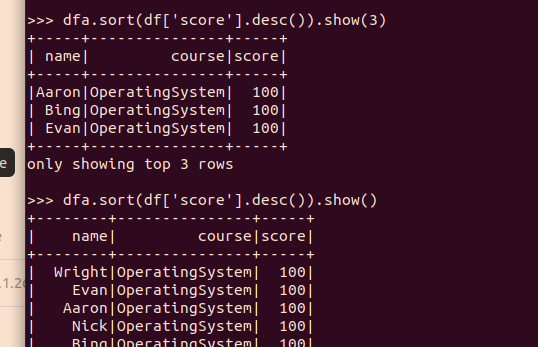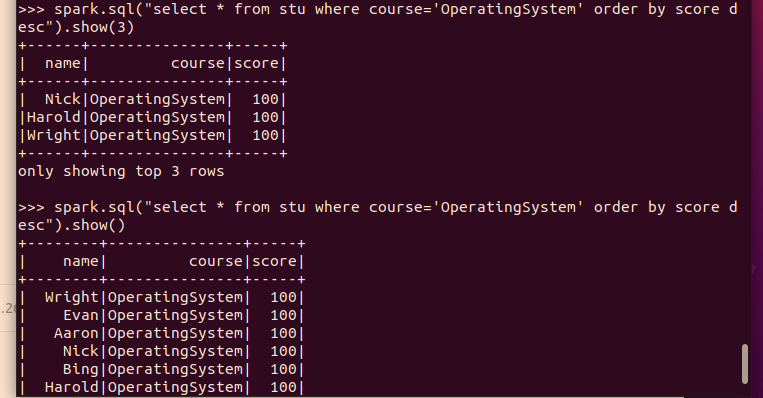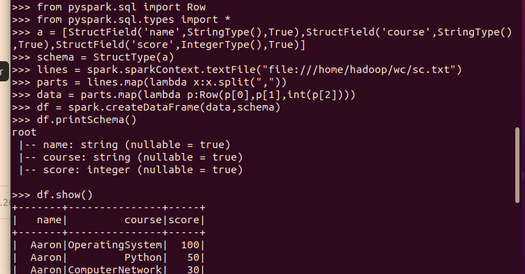 网盘下载sc.txt文件,分别用RDD操作、DataFrame操作和spark.sql执行SQL语句实现以下数据分析