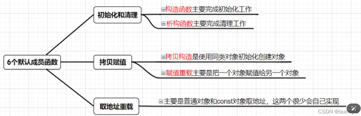 会有6个默认成员函数分别如下(图为sunny-II大佬的,自己比较懒,这里盗用一下QAQ)