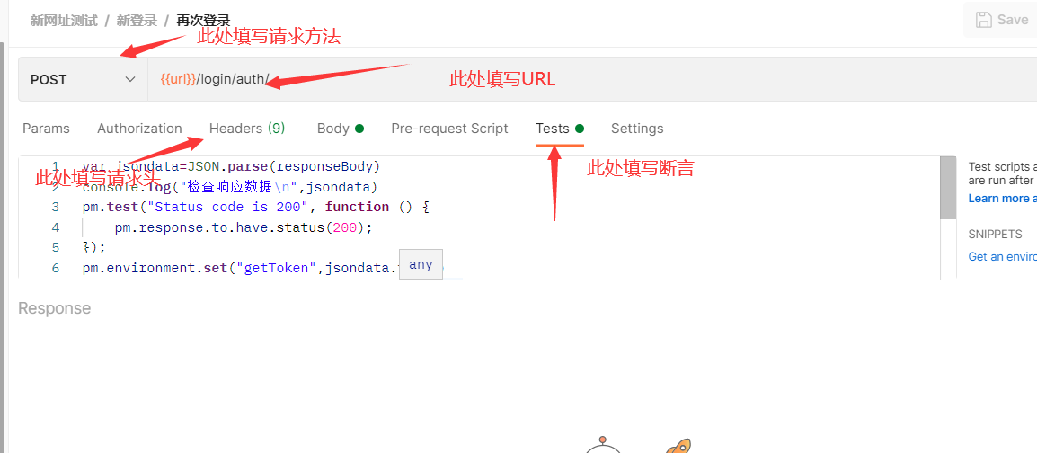 我们首先填入请求方法、请求头以及URL;我们可以在集合的编辑栏里面将URL的IP地址及