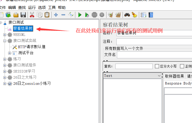 给分离出来,比如IP地址和端口号以及内容编码;我们创建一个‘’察看结果树‘’来运行所有的测试用例;接着,我们新建