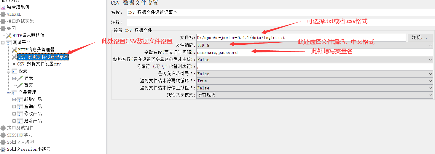 数据文件设置来获取两个人的登录信息,有两种格式,一种是记事本,另一种是.csv文件;当我们需要设置上下两个接口之