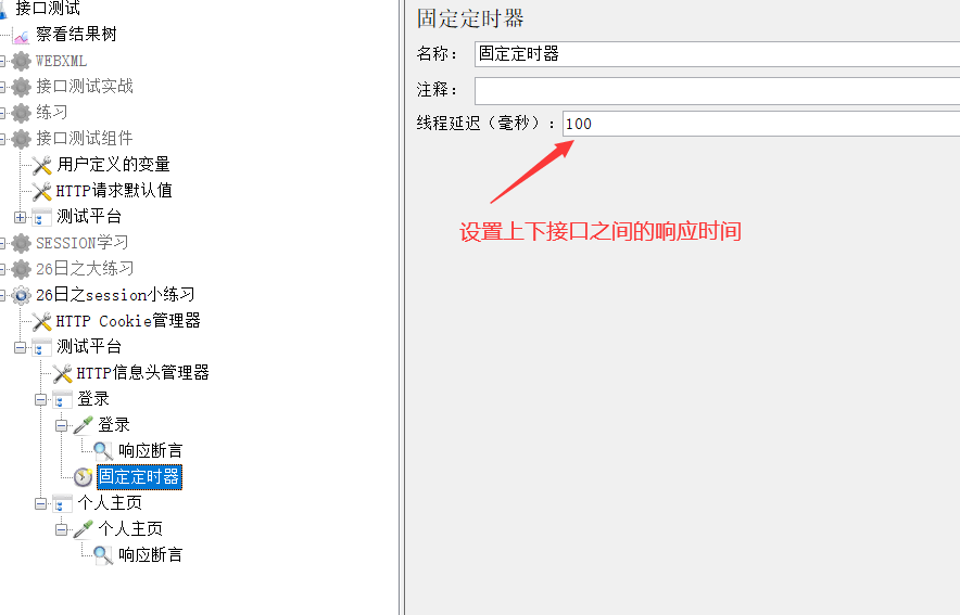 间的响应速度时,我们可以通过设置固定计时器的方法啦设置它们之间的相应时间;我们还需要编写断言,有两种方式,一