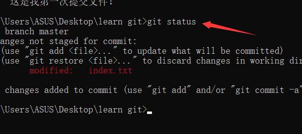 输入git status,查看仓库状态;