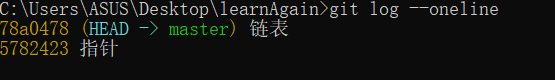 git log --oneline #查看简陋的信息