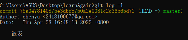 git log -1 #显示最新的一条提交记录信息