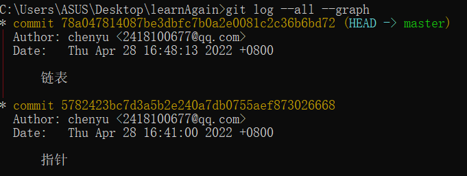 git log --all --graph #查看提交的版本演变
