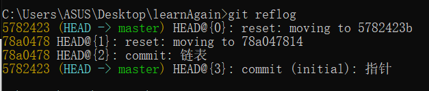 git reflog #记录git所有的操作,包含了提交以及回退