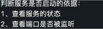 查看一个服务是否瘫痪:查看进程ID是否存在;查看端口是否被监听