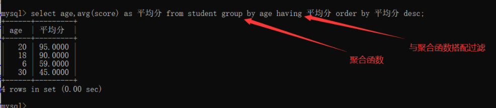 group by:聚合函数,having与where的区别在于having和聚合函数搭配使用