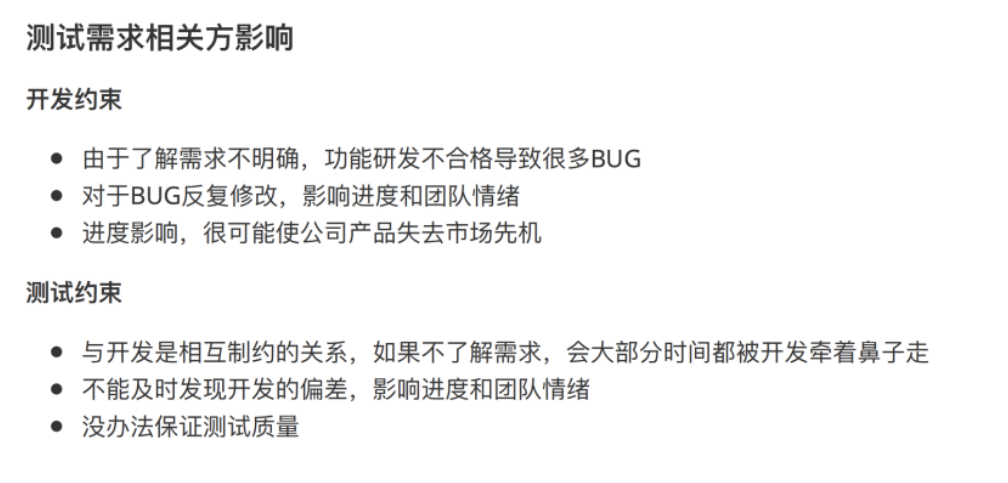 2、测试与开发的关系,测试要相信开发,毕竟是一个团队,但是测试要具有自己的职业职责(开发说我的程序不需要测试,直接上线)。