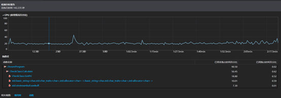 利用Visual Studio自带的性能探查器,我们可以查看程序各函数的调用情况。