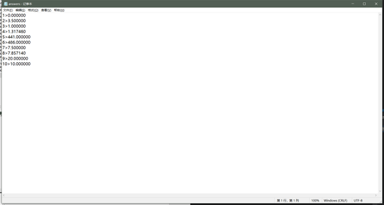 校对答案则先通过文件读写器分别读取题目和回答,然后通过四则运算式计算器计算出结果并将结果与回答对比,之后再在命令行中输出对错情况。
