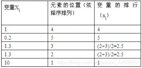 如下:当变量的两个值相同时,它们的排行是通过对它们位置进行平均而得到的。排序之后,将Xi带入上述公式即可。