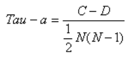其中C表示XY中拥有一致性的元素对数(两个元素为一对);D表示XY中拥有不一致性的元素对数。 带入上述公式即可。