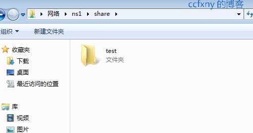 然后我们在share里面为部门创建文件夹,本例假定我们已有的test是个部门,test1是另外一个部门.