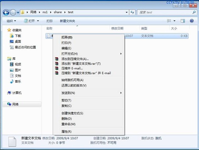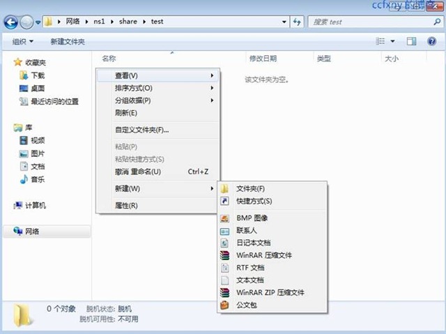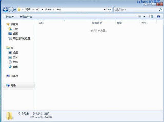 单击share可以进入看到自己的test文件夹,但是test1不可见.这里说一下,如果需要经理可以查看所有的人的文件夹,则在安全里面加入经理的账户.